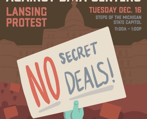 Join us 12/16 in Lansing for Michiganders Against Data Centers protest!