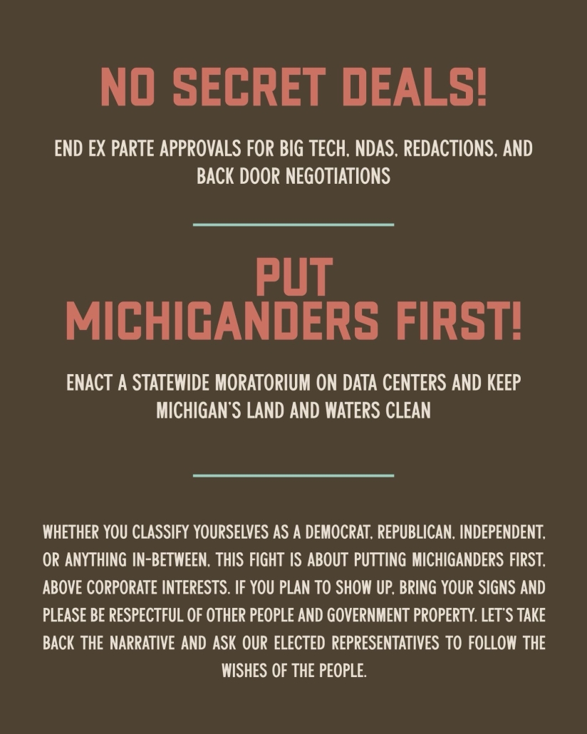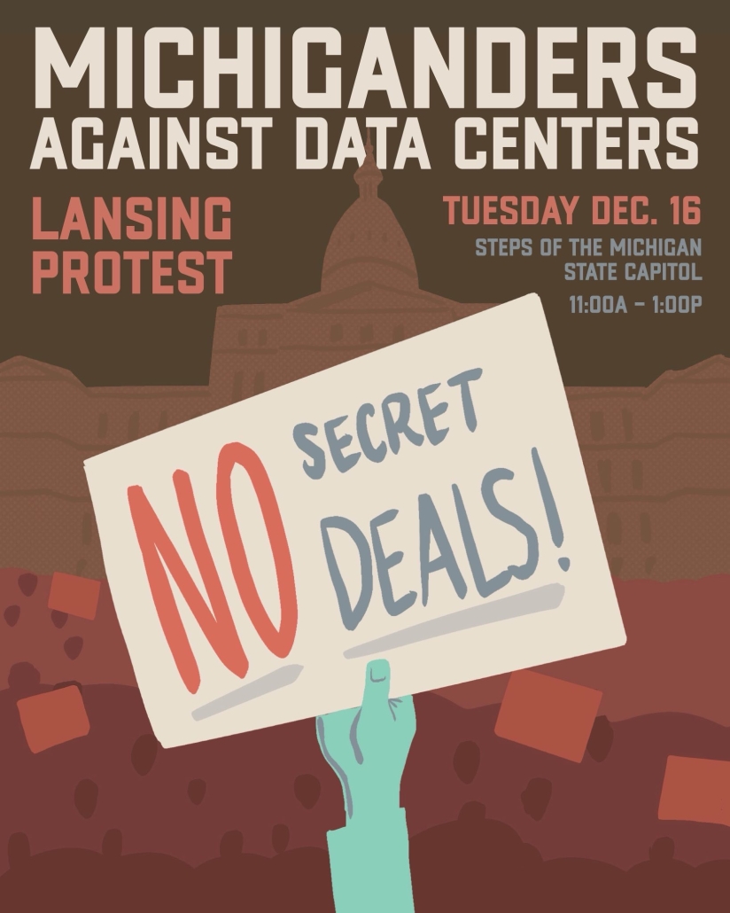 Join us 12/16 in Lansing for Michiganders Against Data Centers protest!