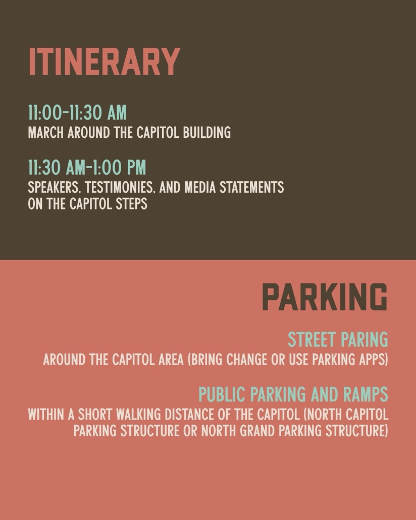 WHEN: 11:00–11:30 march, 11:30–1:00 speakers and testimonies