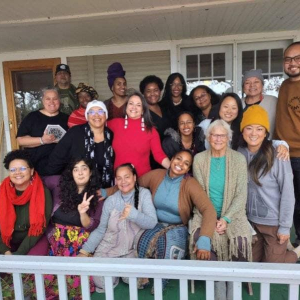 “This brand new song emerged quickly from the hearts and minds of about 10 people in my “Collaborative Songwriting for Collective Liberation” class at the Americana Song Academy at Caldera last week. Here we are guiding the whole group in singing it first thing in the morning, to warm our hearts and voices!